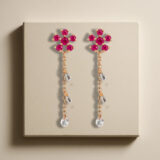 The combination of vivid pink tones and soft sparkle makes these earrings perfect for festive celebrations, weddings, cocktail evenings, or statement styling. Despite their length, they remain lightweight and comfortable for extended wear.