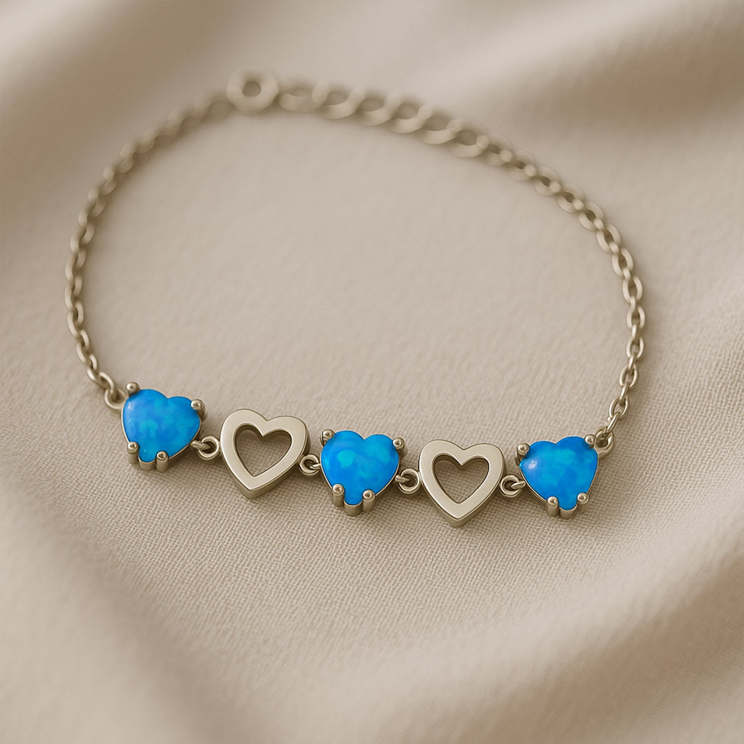 A masterpiece of elegance, the blue-stoned and silver-hearted bracelet is a radiant fusion of serenity and strength. Each deep blue stone reflects calm wisdom and timeless beauty, while the silver hearted heart at its center symbolizes pure love and resilience. Delicately crafted yet powerfully symbolic, this bracelet isn’t just jewelry; it’s a story worn on the wrist, charming in its grace and unforgettable in its meaning.