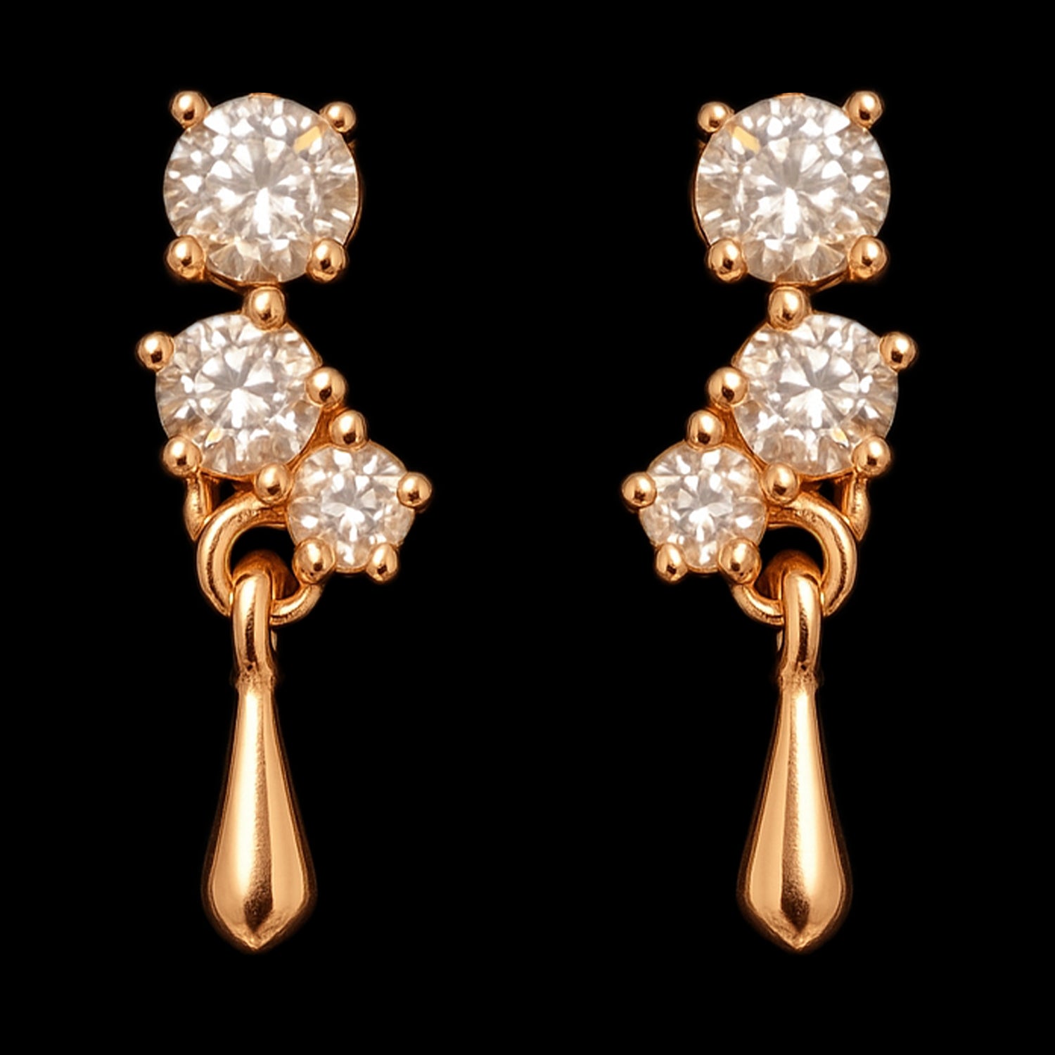 Turn every head with the Golden Cascade Sparkle Drop Earrings a dazzling expression of grace and glamour. Designed with a trio of radiant round-cut crystals ascending in size, each stone is perfectly prong-set in a rich gold-toned frame. A sleek teardrop charm delicately dangles below, adding movement and a hint of drama to the elegant silhouette.